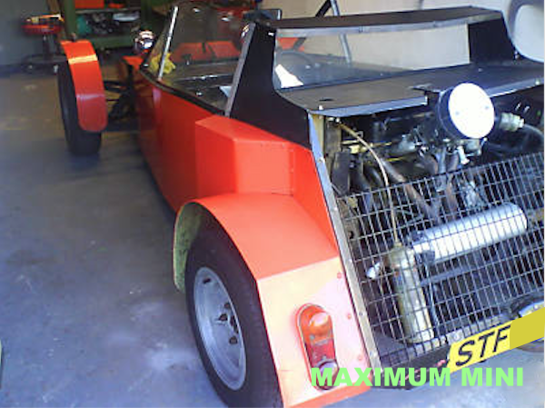 There's a few things visible that seem to me to suggest it isn't a Minipower, or at least it's been hacked about from standard. First the front suspension upper arms. Not the same as a Minipower which has a one piece upper part and spring/shock with lower pickup towards the inside of the vehicle. This has the spring/shock going between two upper arms and the lower pickup close to the outer lower ball joint (Look at online Minipower pics). Also, it has a central gear lever, rather than the right hand one on a Minipower. Lastly the rear wheels appear to be further forward than on a Minipower, although that could just be the angle that the second photo was taken from. Can't see enough from the rear views to tell if it's a Minipower chassis or not, too much mesh in the way. The headlights look familiar tho :-)